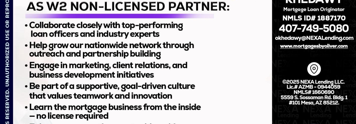 Hi, my name is Oliver Khedawy. I’m a Loan Officer with NEXA Mortgage LLC., offering personalized mortgage solutions, fast customized quotes, great rates and service with integrity.