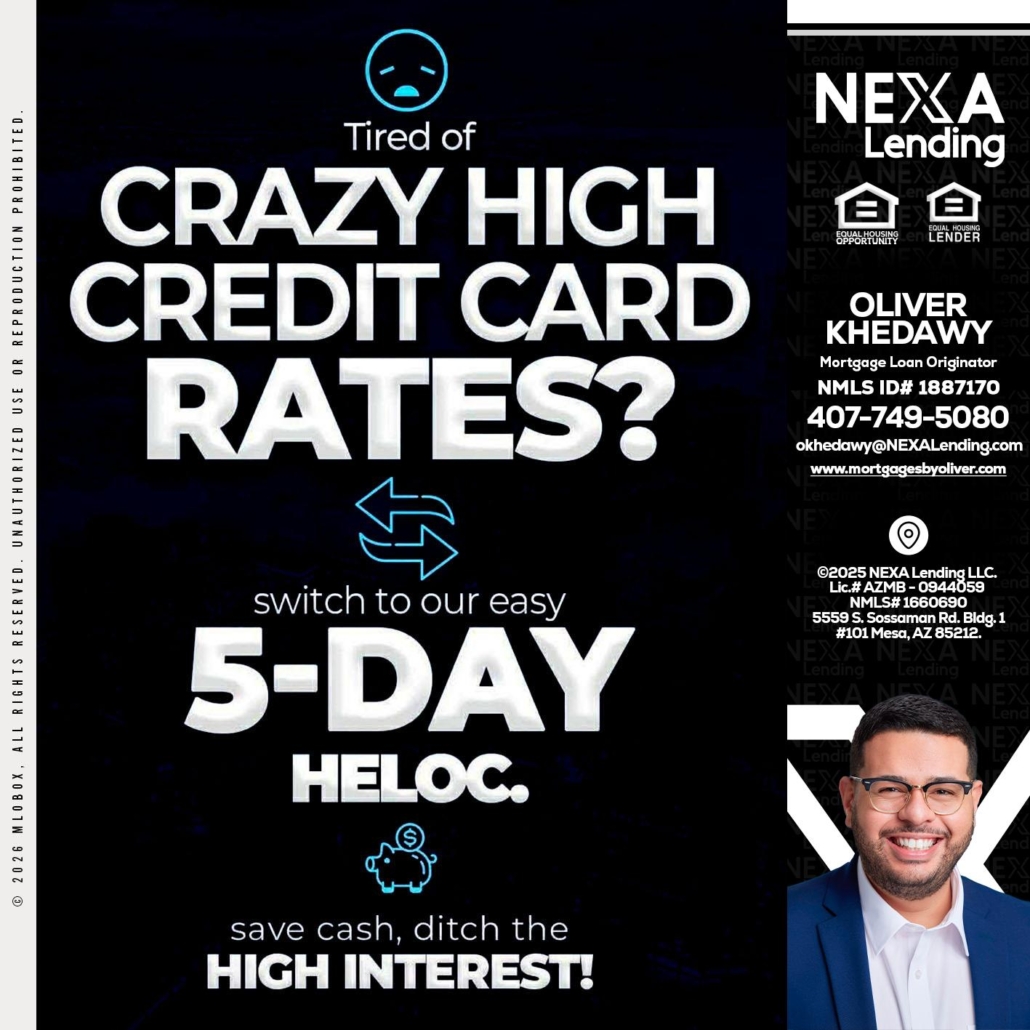 Hi, my name is Oliver Khedawy. I’m a Loan Officer with NEXA Lending LLC., offering personalized mortgage solutions, fast customized quotes, great rates and service with integrity.