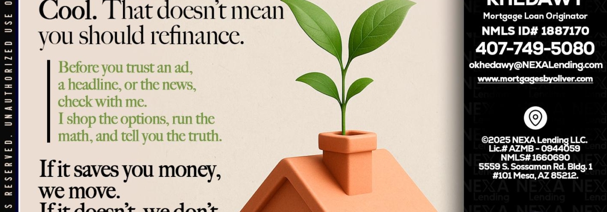 Hi, my name is Oliver Khedawy. I’m a Loan Officer with NEXA Lending LLC., offering personalized mortgage solutions, fast customized quotes, great rates and service with integrity.