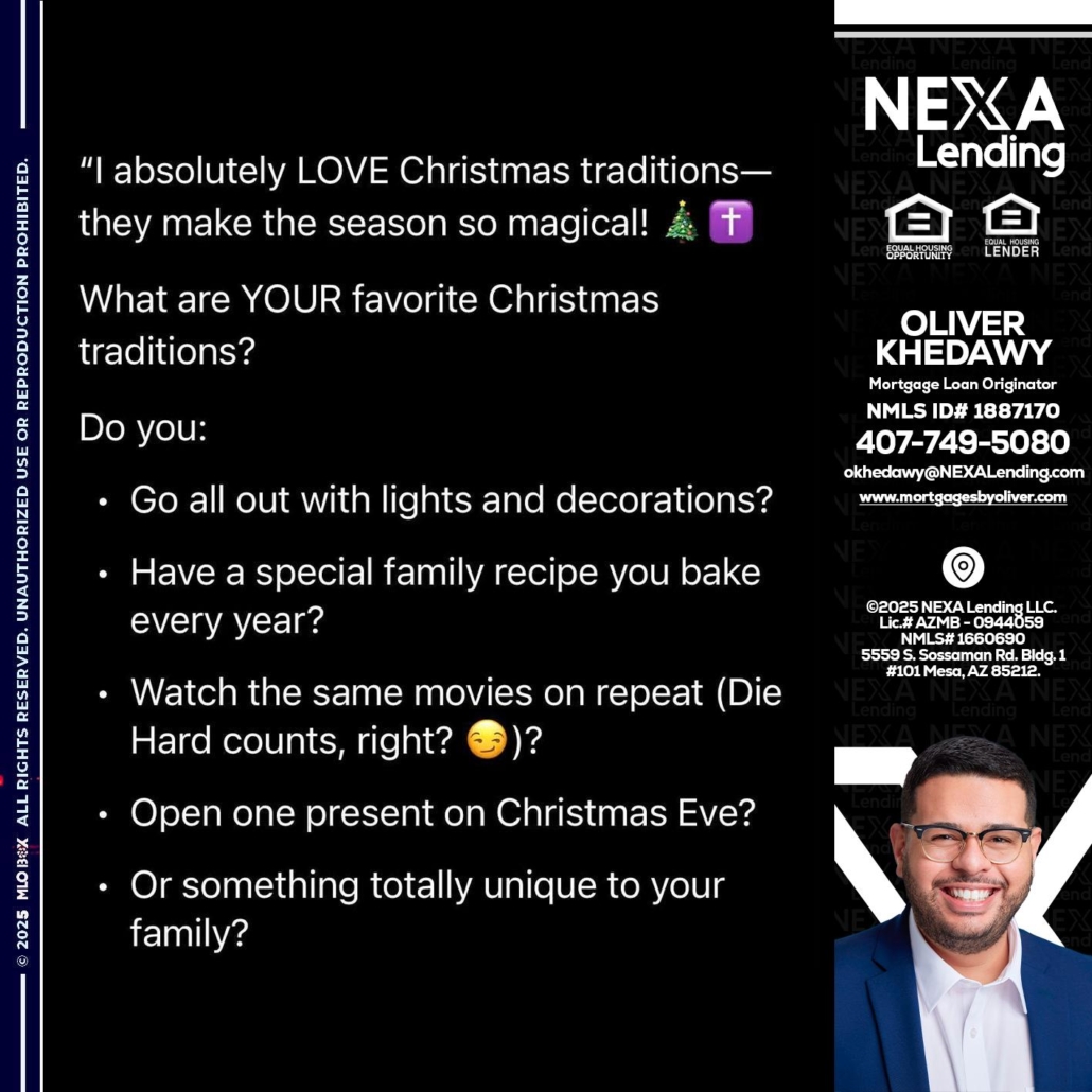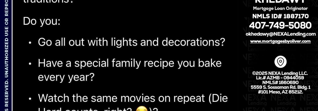 Hi, my name is Oliver Khedawy. I’m a Loan Officer with NEXA Lending LLC., offering personalized mortgage solutions, fast customized quotes, great rates and service with integrity.
