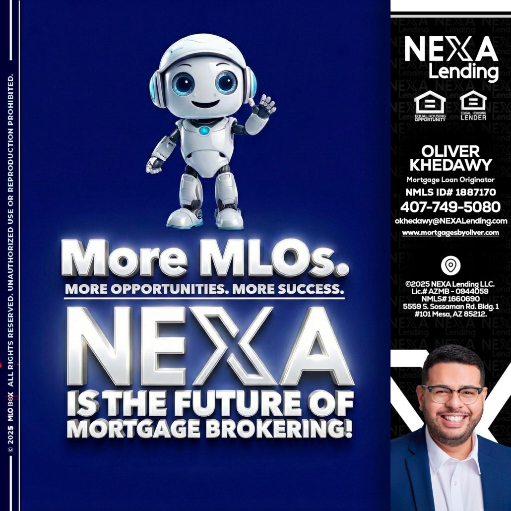 Hi, my name is Oliver Khedawy. I’m a Loan Officer with NEXA Lending LLC., offering personalized mortgage solutions, fast customized quotes, great rates and service with integrity.