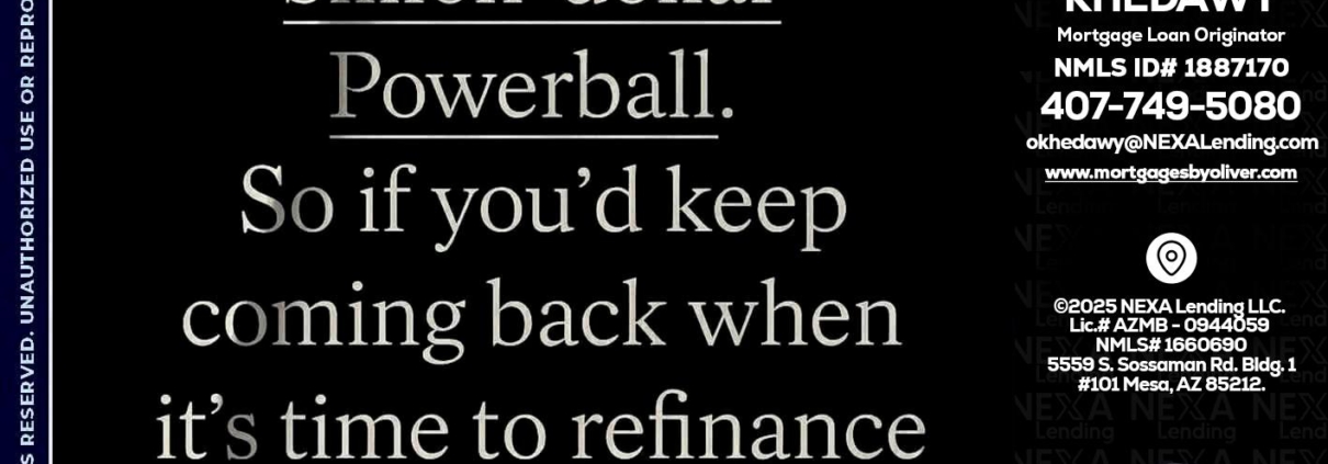 Hi, my name is Oliver Khedawy. I’m a Loan Officer with NEXA Lending LLC., offering personalized mortgage solutions, fast customized quotes, great rates and service with integrity.