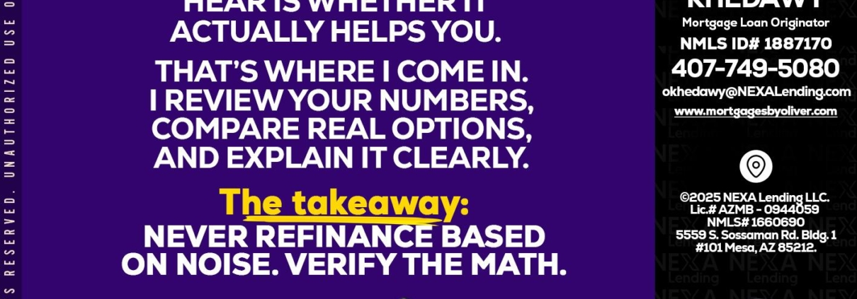 Hi, my name is Oliver Khedawy. I’m a Loan Officer with NEXA Lending LLC., offering personalized mortgage solutions, fast customized quotes, great rates and service with integrity.
